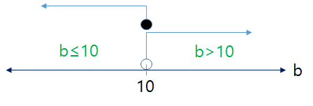 그런데 여기서 이 2개의 조건식들은, 아래 그림에서와 같이, 서로 배타적(exclusive) 이다.