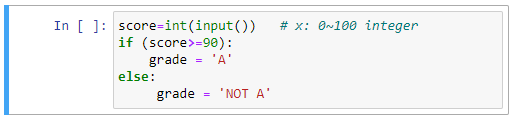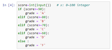 [문제] 0점에서 100점 사이의 값을 갖는 점수값을 입력하면 그 값에 따라 학점을 계산해 주는 코드를 만들고자 한다. 입력된 점수값이 90점 이상이면 A 학점, 80 이상 90 미만이면 B 학점, 70 이상 80 미만이면 C 학점, 60 이상 70 미만이면 D 학점, 60 미만이면 F 학점이 된다.