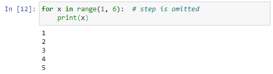 range(start, stop) : step 값이 생략된 형태, step은 디폴트로 1