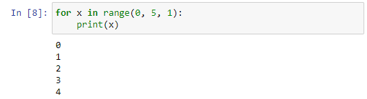 기본적으로, start 부터 시작해서 stop에는 미치지 못하게, step 만큼 증가(또는 감소)한다 (stop 은 포함하지 않음에 주의). 아래의 range(0, 5, 1) 은 "0부터 시작해서 1씩 증가하되 5보다는 작게" 라는 뜻이다.