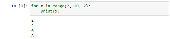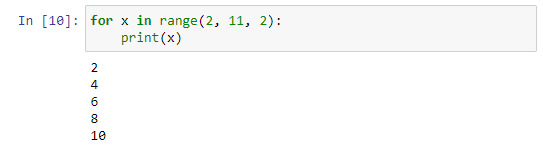 만약에 "2부터 시작해서 2씩 증가하는데 10보다는 작게"를 나타내는 range( ) 함수의 형태는 어떻게 될까?