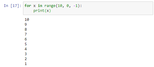 step 값을 음수로 하면 카운트 다운 (count down) 도 당연히 가능하다. 예제를 본다면,