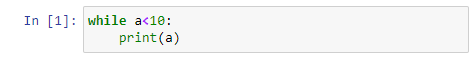 주피터 노트북에서는 무한루프가 발생하면 해당 셀의 In[ ] 에 일련번호가 나타나지 않고, 다음 그림과 같이 * 표가 나타나게 된다.