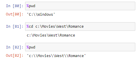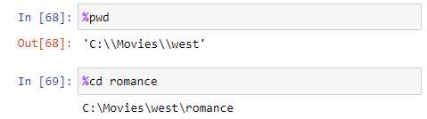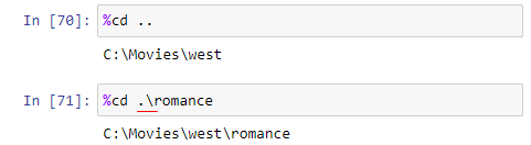 서브 디렉토리 중에 한 곳으로 이동하고 싶으면 %cd 에 그 디렉토리의 이름을 적어주면 된다. 예를 들어, 현재 West에서, West 아래에 있는 Romance로 이동하고 싶다면 %cd romance 라고 하면 된다