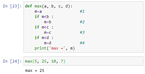 #1 까지는 m에 a 값이 저장된다. #2 까지는 a 와 b 중에 큰 값이 m 에 저장되고, #3에 이르면 a, b, c 중에 큰 값이 m 에 저장된다. #4에 이르면 a, b, c, d 중 가장 큰 값이 m에 저장되게 된다.
