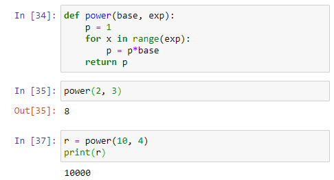 2의 3승 처럼 어떤수를 여러번 곱한 멱승을 구하는 코드를 만들어 보자. 위에서 본 합을 구하는 알고리즘과 정확히 일치한다. 대신, 초기값에 0을 두고 계속 곱해봤자 0 밖에 더 되겠나? 합을 구할 때에는 덧셈의 항등원 0 을 초기값으로 사용한 대신에, 멱승을 구할 때에는 곱셈의 항등원인 1을 사용해야겠다.
