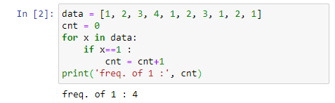 만약 우리가 리스트에서 1 값의 개수를 센다고 한다면, 우리가 결국 구해야 하는 어떤 값을 cnt 라고 해 보자. 리스트 데이터를 하나씩 하나씩 1과 비교해 보면서 만약 1이면 cnt 값을 1씩 증가시키면 된다. 리스트의 마지막 요소까지 방문을 완료했을 때 cnt 에 저장되어 있는 값이 1의 개수가 된다.