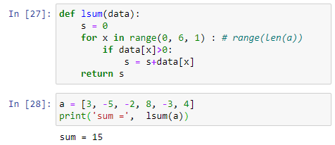 하지만, 일반적인 문제에서는 위와 같은 기본적인 함수들을 활용하기 어렵다. 예를 들어, 리스트 내의 데이터의 합을 구하긴 구하는데, 리스트에 포함된 데이터 중 양수의 합 만을 구하고자 하는 경우이다. 위의 sum( ) 함수를 이용하기 어렵겠다. 그럼, 파이썬 본사(?)에다 연락해서 이와 같은 기능을 해 주는 새로운 함수를 하나 만들어 달라고 해야 하나? 웃자고 하는 소리다. 답은 너무 빤하다. 우리가 필요한 건 우리가 만들어야 한다. 그래서, 알고리즘 공부와 연습이 너무 너무 중요한 것이다.