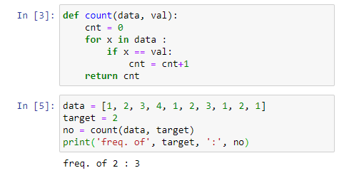 위의 코드를 일반화 시켜서 데이터의 리스트와 찾아야 할 값을 인자로 넘겨받아 그 개수를 카운트하는 함수로 한번 만들어 보자