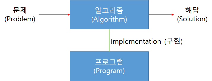 무엇(What)인가 문제가 주어진다. 우리는 그것을 해결할 수 있는 방법(How) 을 찾는다.그 방법대로 하면 어떤 답(Solution)을 얻는다. 알고리즘(Algorithm) 은 주어진 문제로 부터 해답을 찾아내는 어떤 과정이다.