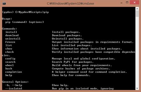 기본적으로 pip <command> [options] 형태로 사용된다.