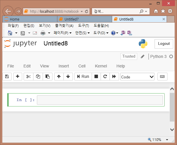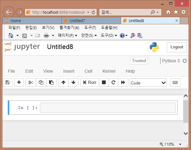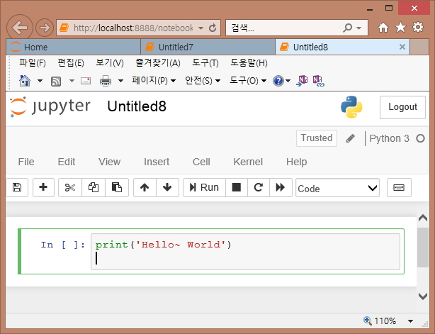 * 주피터 노트북은 마크다운(Mark Down) 형식의 문서 편집을 지원합니다. 이 부분에 대해서는 나중에 따로 한번 정리하도록 하겠습니다.