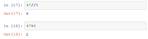 몫 연산자는 // (나눗셈을 나타내는 슬래시 심볼을 2개 붙여서 사용함), 나머지 연산자는 % 기호를 사용한다.